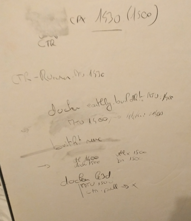 - ip a|grep mtu -> 1400 for eth0, but 1500 for docker -> that’s a bad sign