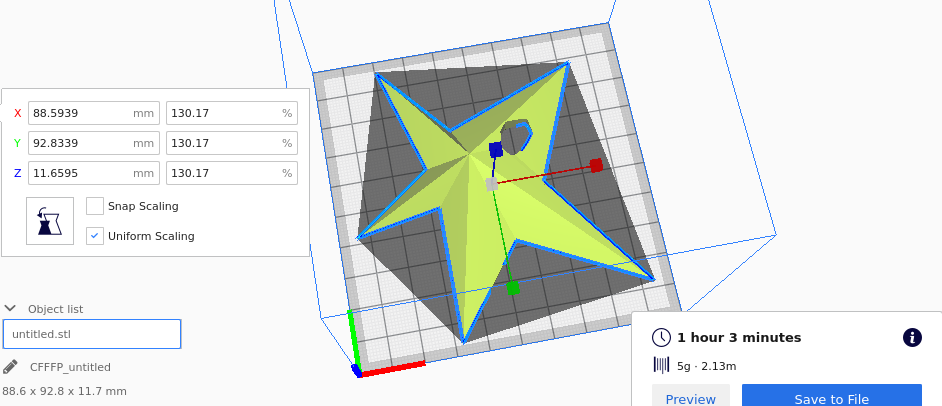Then, its time to make a first try, printing the first half of the star.