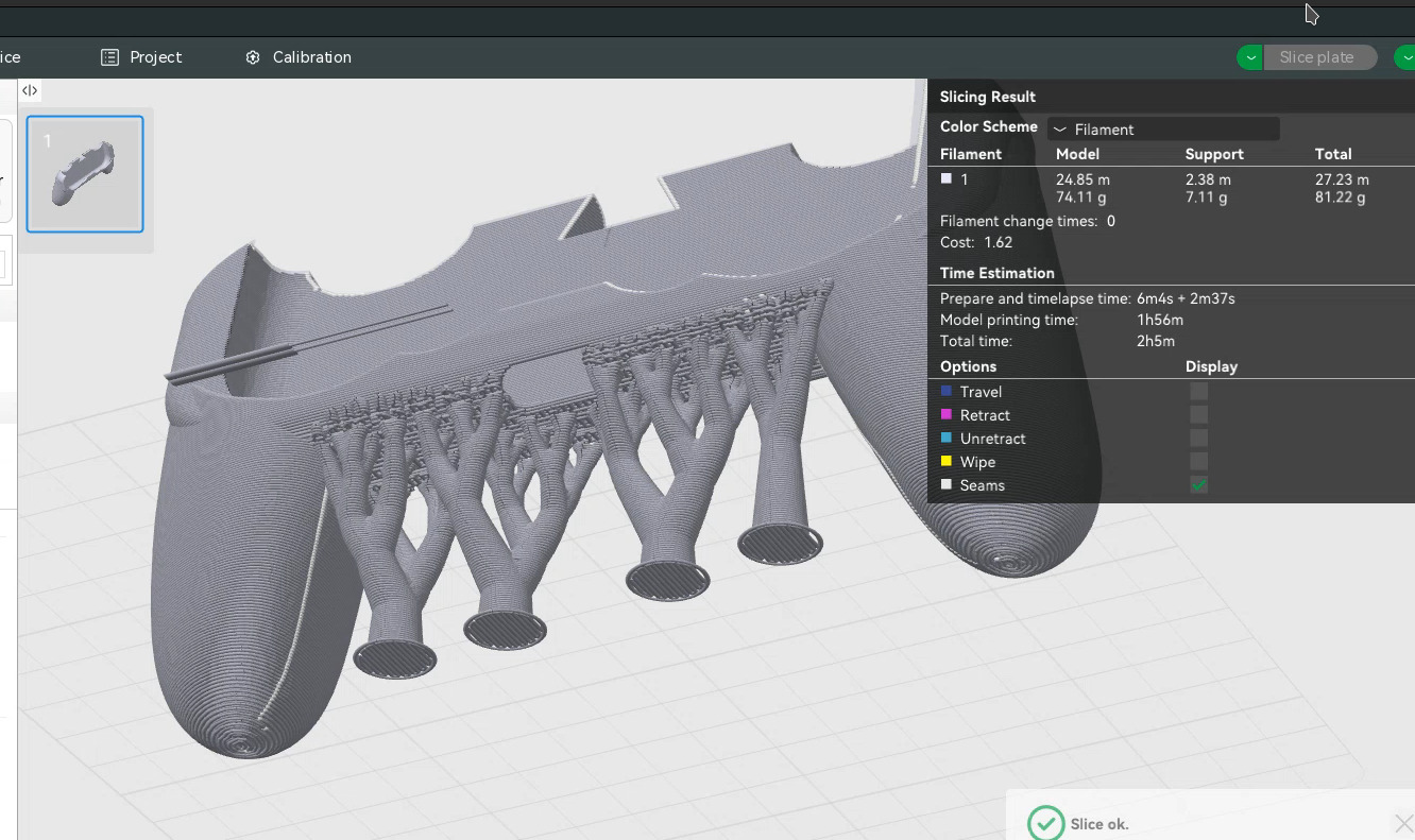 My first attempt used 0.6 mm nozzle and no support on bambulab a1 mini. It was not great.
