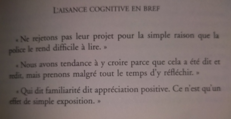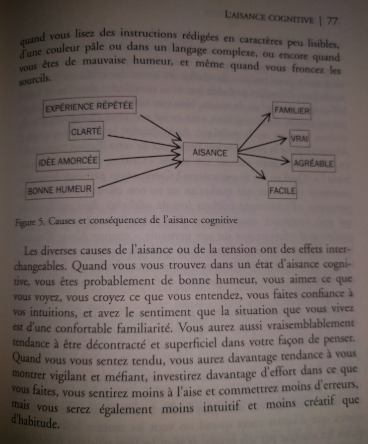 Il est indiqué dans Système 1 / Système 2 que l’aisance cognitive est associé à la crédibilité qu’on donne au jugement donné.