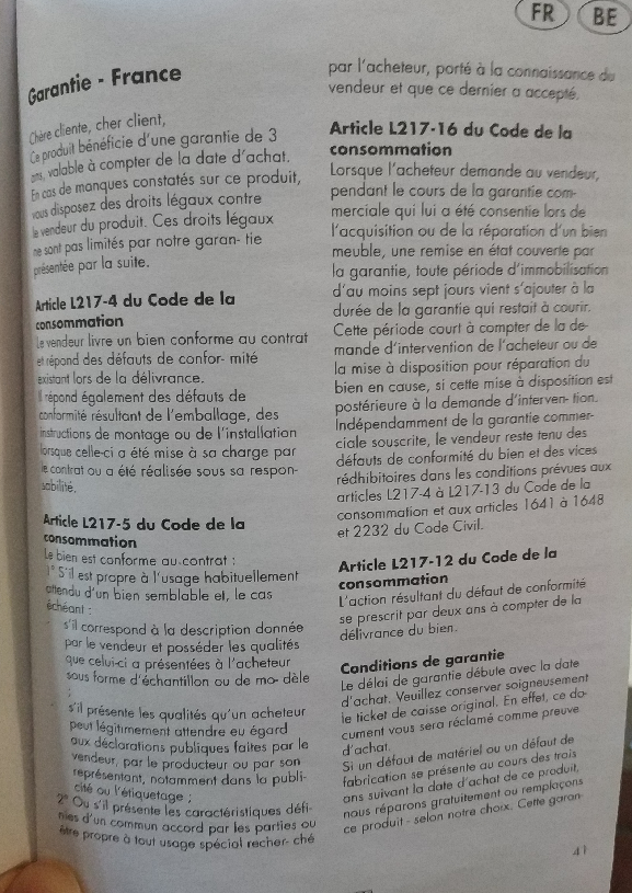 articles de lois liés à la garantie