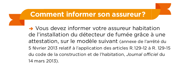 L’occupant (le locataire ou le propriétaire) doit déclarer à son assureur avec lequel il a souscrit une assurance Incendie et explosion que le logement est équipé d’un Daaf.