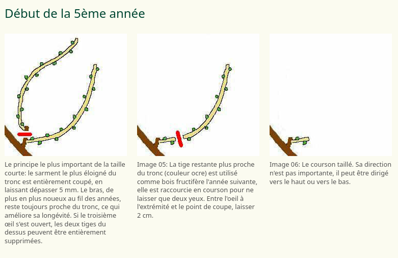 ↩︎ ↩︎ ↩︎ ↩︎ ↩︎Dans tous les cas elle consiste à supprimer le rameau qui a donné des fruits, pour laisser pousser un nouveau rameau fructifère tout en gardant un “œil” en réserve pour l’année suivante…