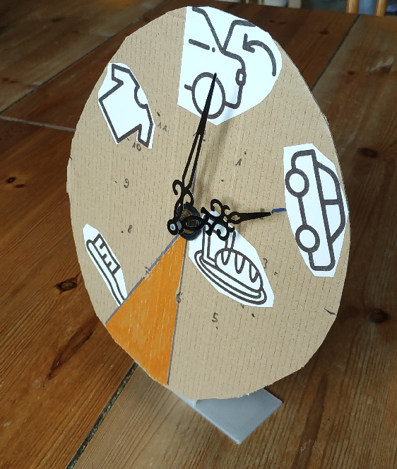 - add some blocks to prevent the cardboard and the disk from moving too freely along the axis of the clock,