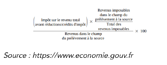 Référence externe : https://www.tacotax.fr/guides/impot-sur-le-revenu/le-prelevement-a-la-source-en-france/comment-est-calcule-le-taux-de-prelevement-a-la-source