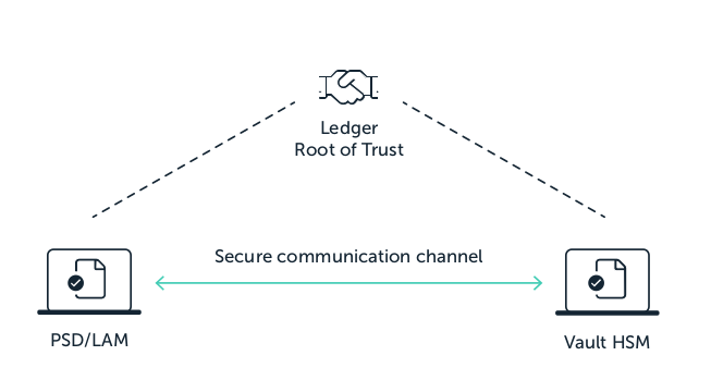 Maintaining this guarantee was one of our key concerns while building the Ledger Vault APIs, which led us to design an architecture based on a client- infrastructure rather than Ledger’s, the LAM is able to securely isolate the secrets that will be used to authenticate and communicate with your Vault.