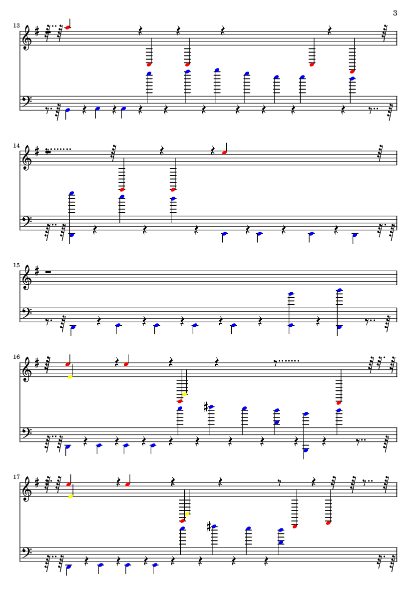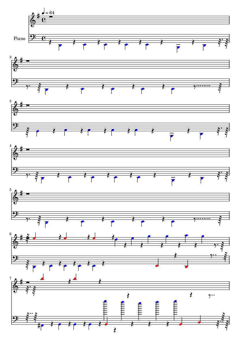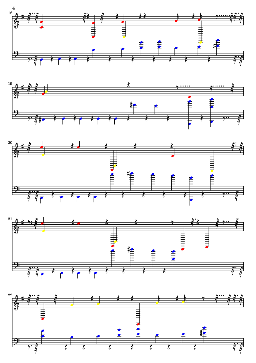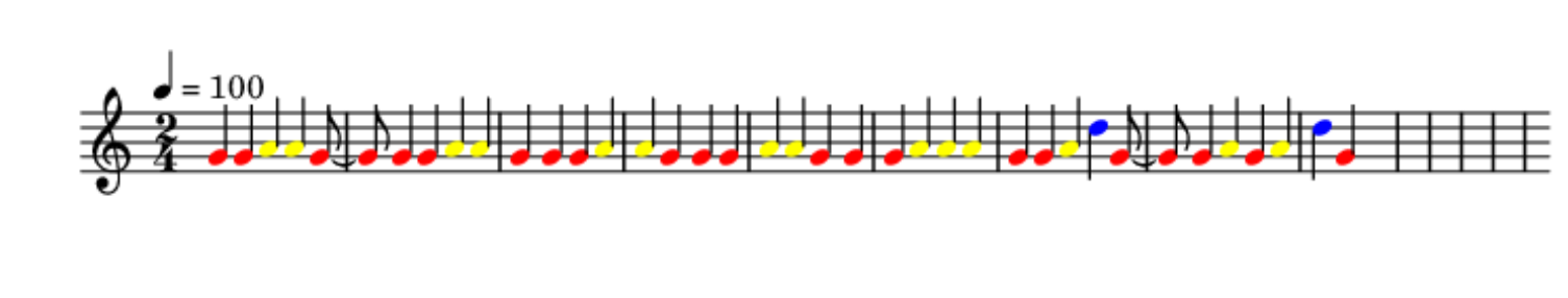Then, using the snippet to color notes, changing the staff to make it more piano like and removing the silences.