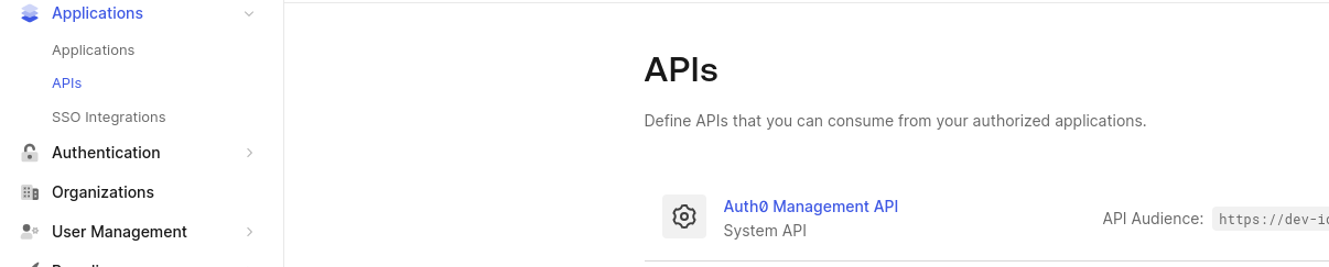 I remember that using the audience claim, we could get a JWS token. By digging into the API section, I can see that auth0 created an API for my application, and that this API is associated to an audience -> https://${domain}/api/v2/