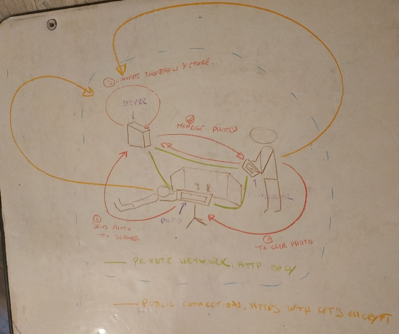 - when the user clicks on a button of the controller, it post the order to the server, keeping a copy of the current photo and sending its name so that the controller can get a list of kept photos to show to the user.